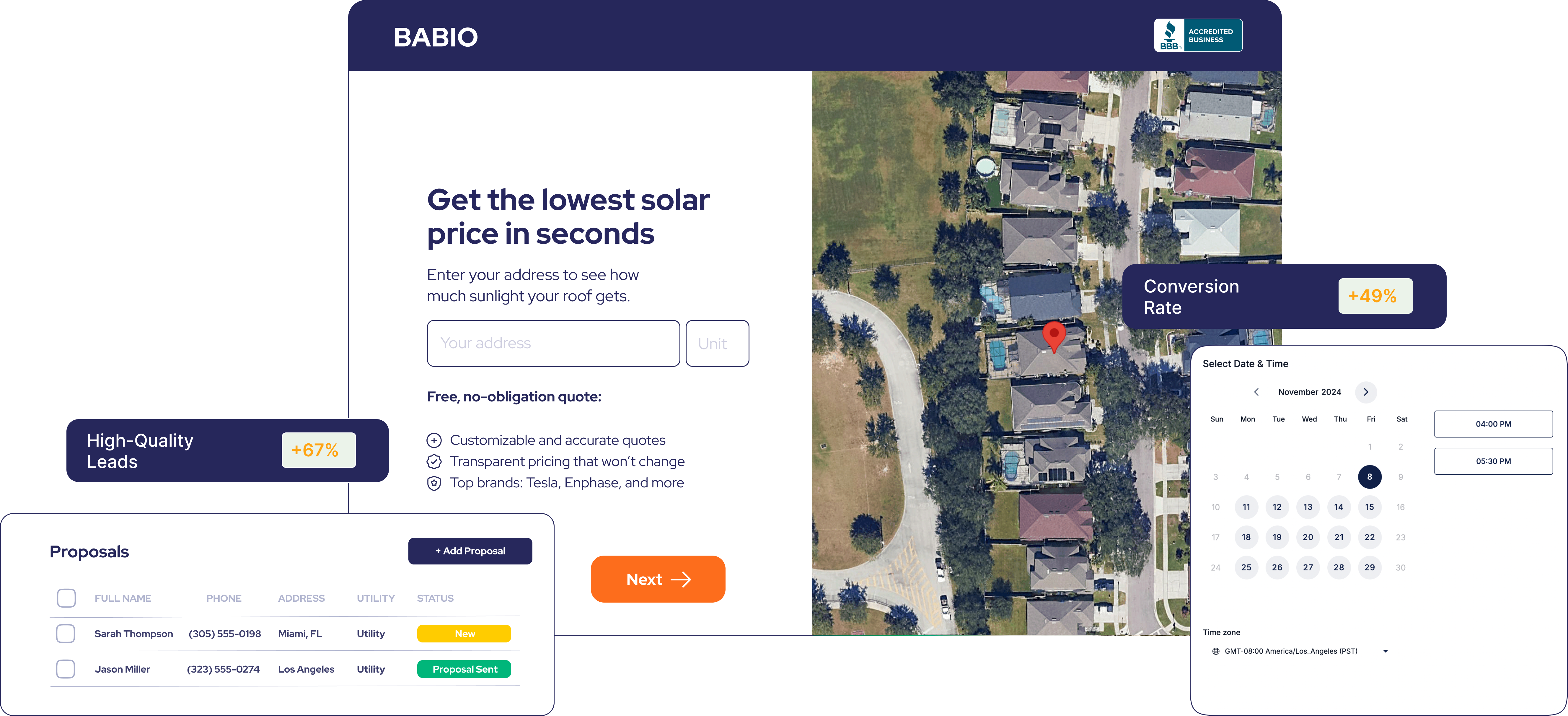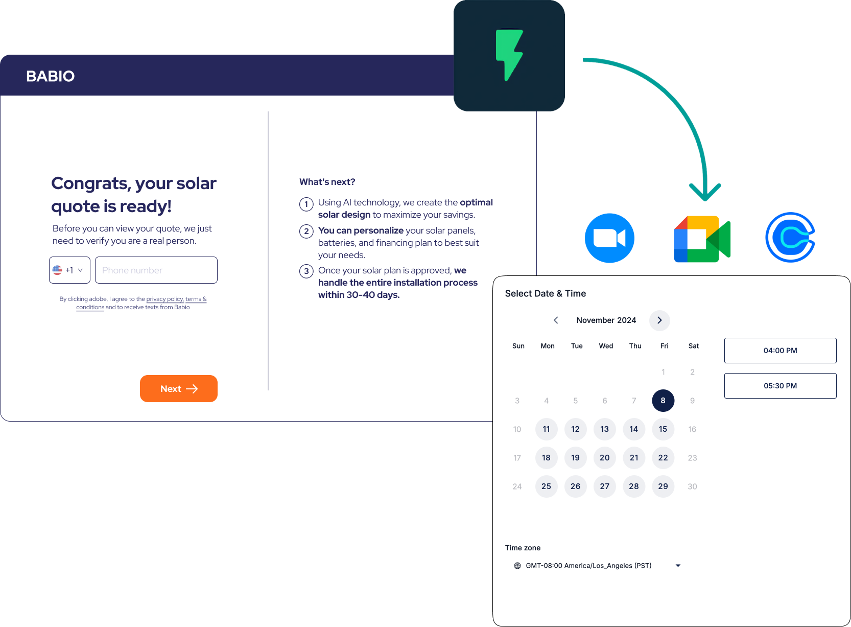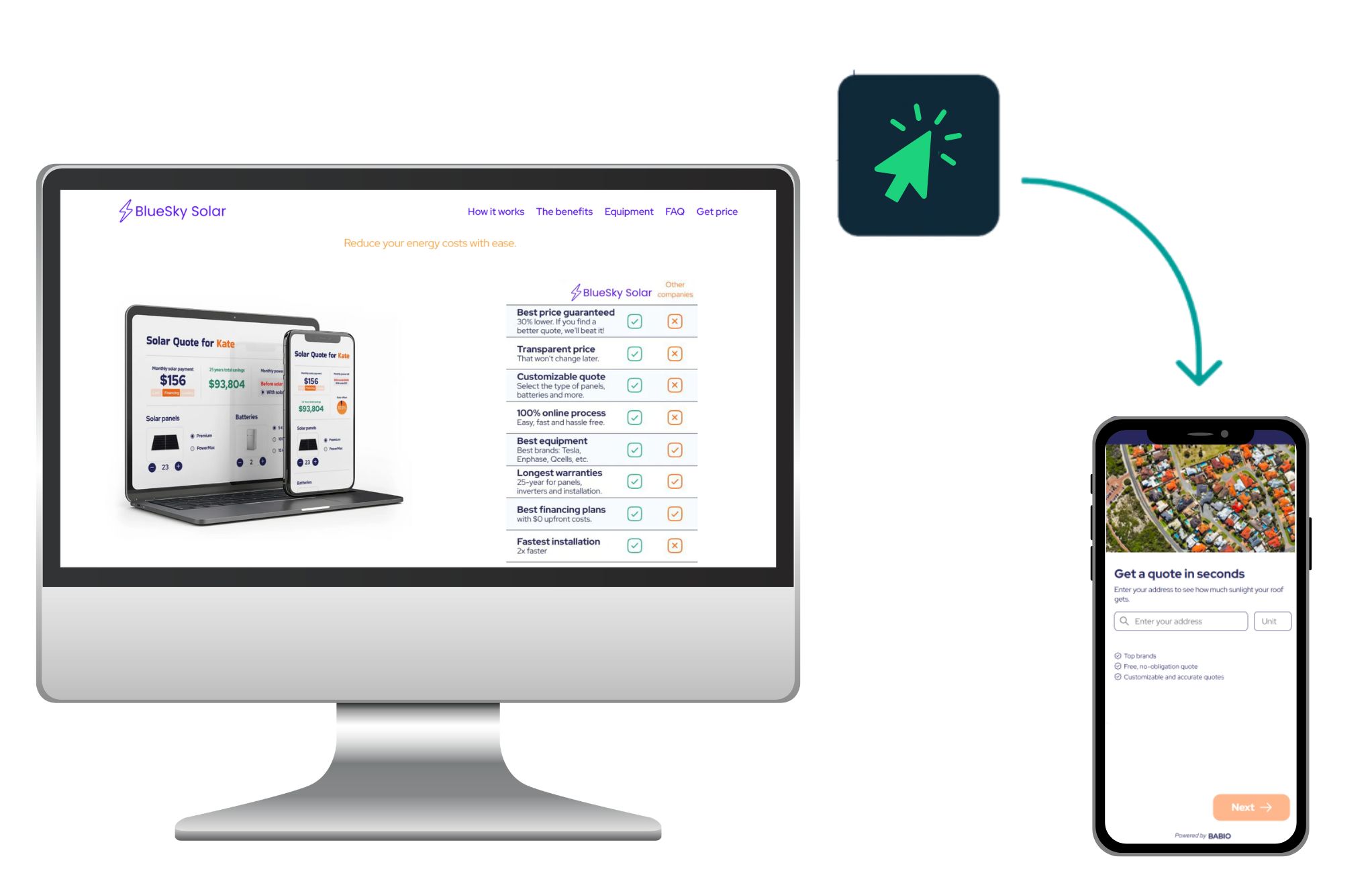 Babio is the first AI customer-facing software that enables solar businesses to offer instant, accurate solar quotes directly on their website.